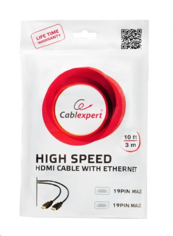 Popis GEMBIRD Kabel HDMI-HDMI 3m, 1.4, M/M stíněný, zlacené kontakty, bílý