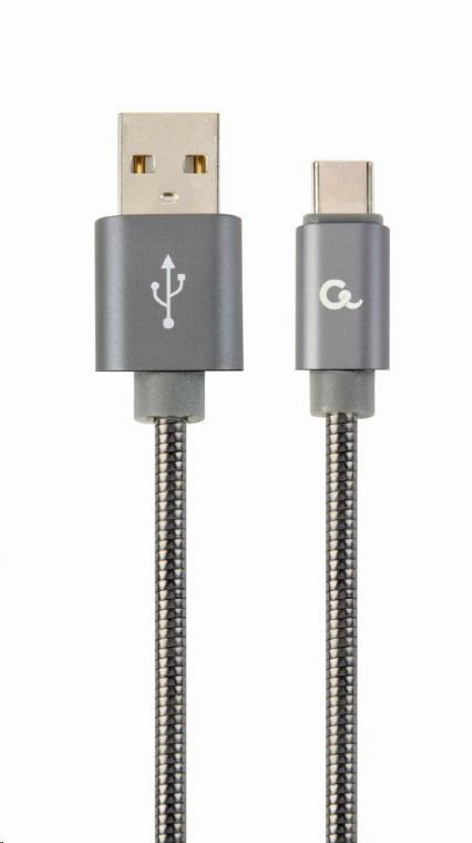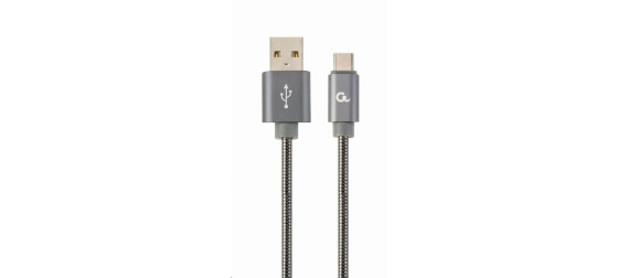 Premium spiral metal Type-C USB charging and data cable, 1 m, metallic-grey