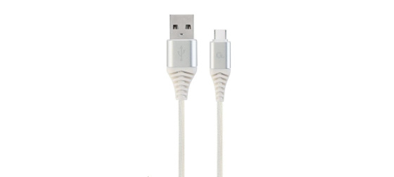 Premium cotton braided Type-C USB charging and data cable, 1 m, silver/white