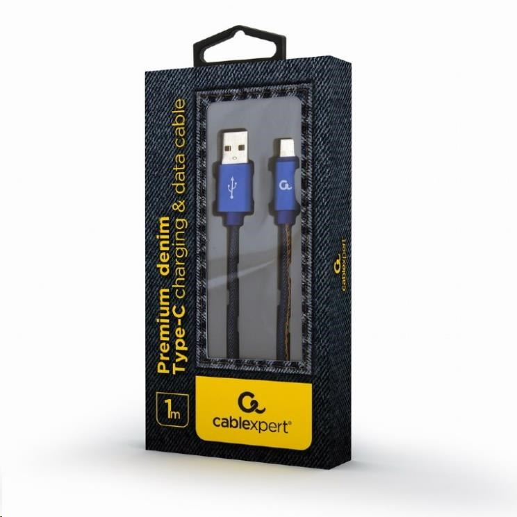 Premium jeans (denim) Type-C USB cable with metal connectors, 1 m, blue