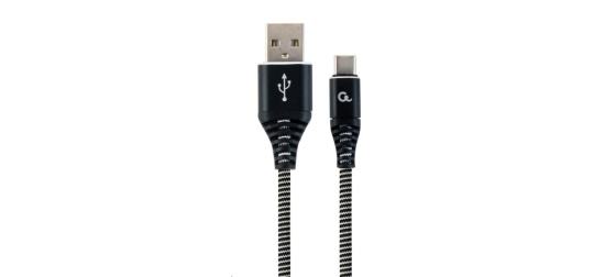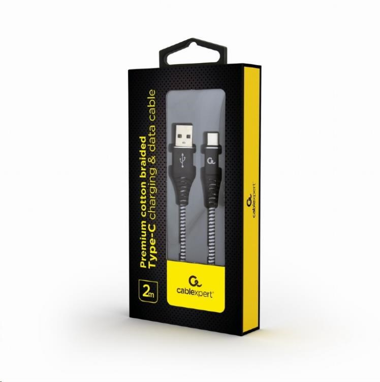 Premium cotton braided Type-C USB charging and data cable, 2 m, black/white