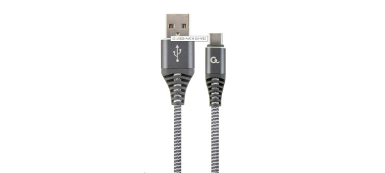 Premium cotton braided Type-C USB charging and data cable, 2 m, spacegrey/white