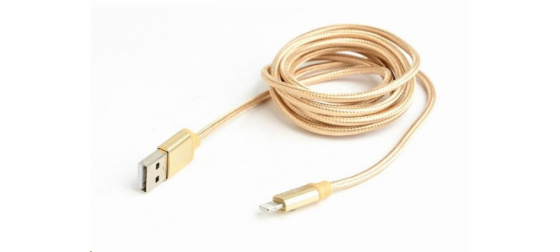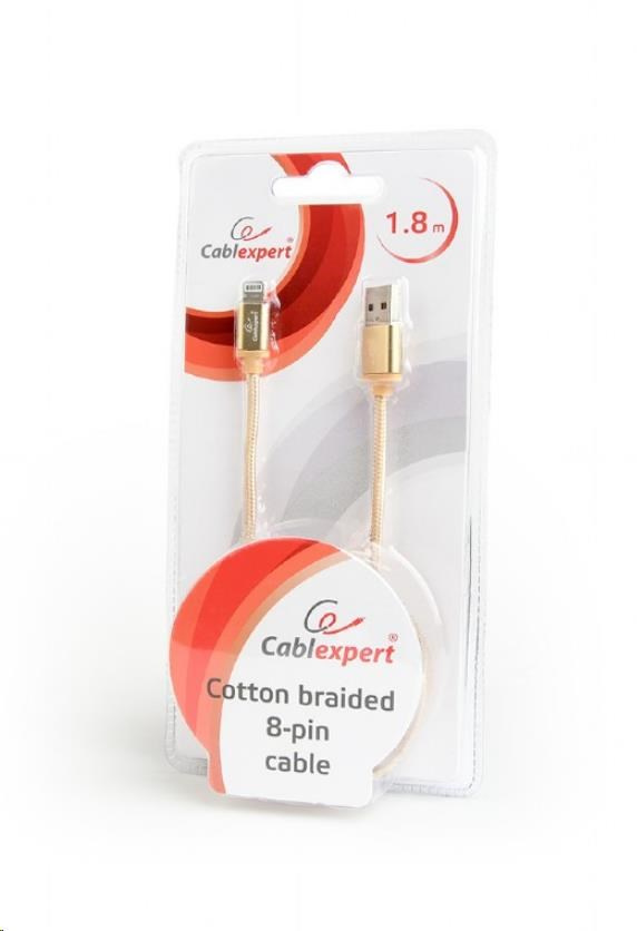 Cotton braided 8-pin cable with metal connectors, 1.8 m, gold color, blister