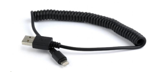 USB sync and charging spiral cable for iPhone, 1.5 m, black