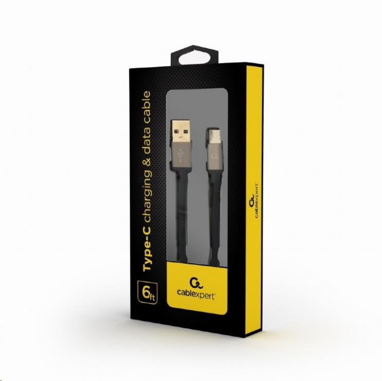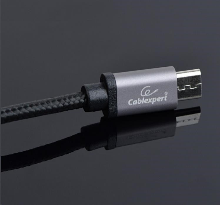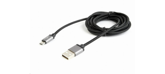 Cotton braided Micro-USB cable with metal connectors, 1.8 m, black, blister