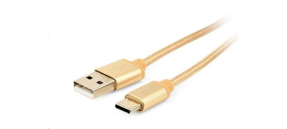 Cotton braided Type-C USB cable with metal connectors, 1.8 m, gold color, blister