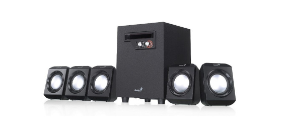 Elegantní systém reproduktorů v konfiguraci 5.1 nabízí celkový výkon 26 W. Sestava je tvořena kvalitním subwooferem s 4" driverem, který disponuje výkonem 14,5 W RMS a stará se o věrné a plné basové tóny. Subwoofer je doplněn pěti satelity, kdy každý disponuje výkonem 2,3 W RMS. Ovládání hlasitosti i basů se nachází na přední straně subwooferu. Součástí balení je napájecí adaptér 100-240 V.