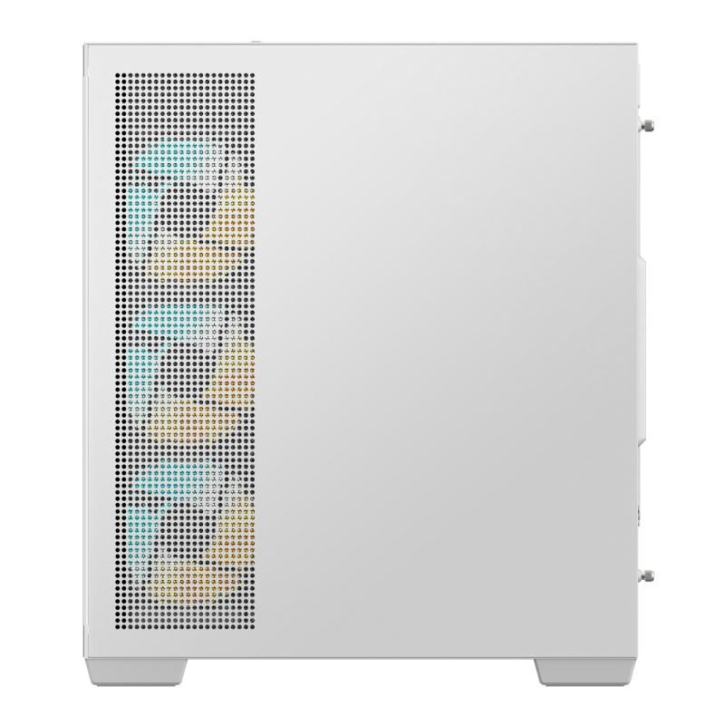 Přední i boční panely jsou vyrobeny ze 4mm tvrzeného skla, které nabízí 270° panoramatický pohled na vnitřní sestavu. To umožňuje uživatelům snadno předvést své přizpůsobené PC zařízení. Konstrukce obou skleněných panelů bez vrtání snižuje riziko poškození a zvyšuje celkovou vizuální přitažlivost.