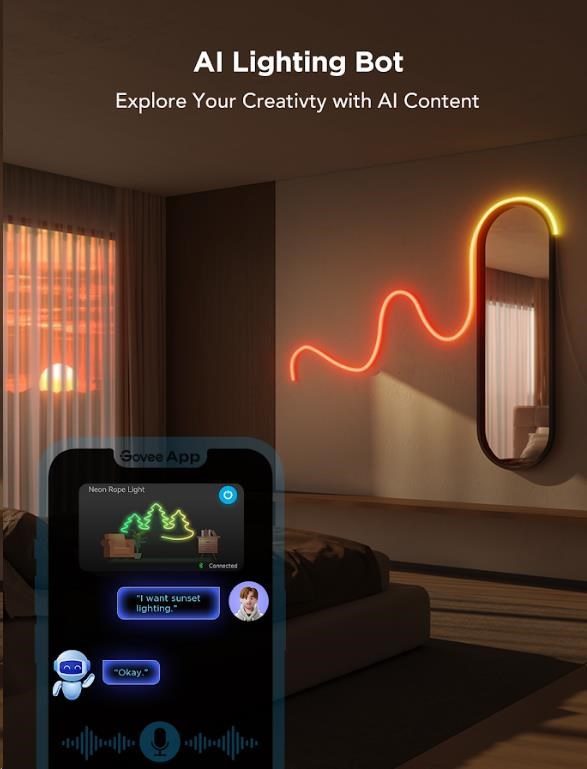Govee přináší 2. generaci svých neonových pásků. Připravte se na řadu zásadních zlepšení. Vaše gamingové, pracovní nebo relaxační prostředí dostane novou dávku energie s Govee Neon 2. Tyto designové pásky, jsou nyní měkčí, takže tvarování je snadnější. Hotové tvary lze s pomocí přiloženého materiálu umístit na libovolný povrch a s pomocí aplikace a fotoaparátu si tvar do aplikace přenést. Na vytvořený vzor můžete namapovat 16,4 mil. barev a aplikovat množství efektů. 3m pásek se skládá ze 252 diod, což dává hustotu 84 LED/m. Příkon pásku je 36 W při plném výkonu a životnost je 50.000 hodin. Díky technologii RGBIC lze pásku přiřadit až 57 barev najednou v intenzitě 1-100 %. Pro zákazníky, kteří upřednostní přednastavené režimy pásek nabízí 64 světelných scén a 12 způsobů vizualizace hudby. Vybere si každý. Neon 2 se ovládají aplikací a je možné využít i asistenty, Google, Alexa a Siri. Zcela nově pásky podporují protokol Matter, takže integrace do většiny Smart Home prostředí je otázka několika vteřin. Instalace pásků se provádí pomocí přiložených klipů, vybavených silnou, oboustrannou 3M páskou, bez vrtání. K instalaci je nutný pevný povrch, při upevnění na omítku nelze pevnost spojení garantovat.