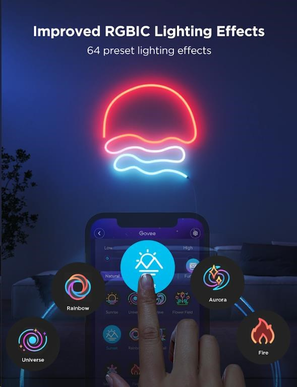 Instalace je velice jednoduchá pomocí samolepících klipů s 3M páskami. Nová generace neonových pásku je ještě ohebnější a tvarování je tak snazší. Vylepšeny byly i klipy a nabízí teď pevnější fixaci vymyšleného tvaru. Pro možnost maximální jistoty jsou v balení i šroubky. Govee Neon 2 je vhodné pro všechny místnosti a fantazii se meze nekladou!