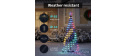 Stromeček je odolný vůči nepříznivému počasí a bez problémů zvládne zimní teploty i vlhko, což z něj činí ideální venkovní vánoční dekoraci. Díky voděodolnému světelnému řetězu s krytím IP65 a bezpečnému napájecímu adaptéru s krytím IP44 je připraven odolat dešti i sněhu, zatímco stabilní konstrukce s přiloženými kolíky a závažím pro základnu zajistí pevné uchycení a stabilitu i za větrného počasí.
