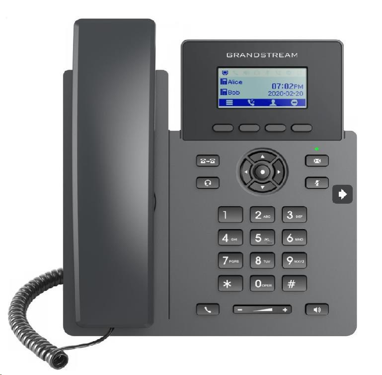 Součástí nové Grandstream GRP řady IP telefonů je i GRP2601. Jde o základní dvoulinkový model navržený pro hromadné nasazení a snadný management. Vyznačuje se elegantním designem a sadou funkcí nové generace, včetně 5 cestné audiokonference pro maximální produktivitu, podporou EHS pro náhlavní soupravy Plantronics, Jabra a Sennheiser , vícejazyčnou lokalizaci včetně české a slovenské.