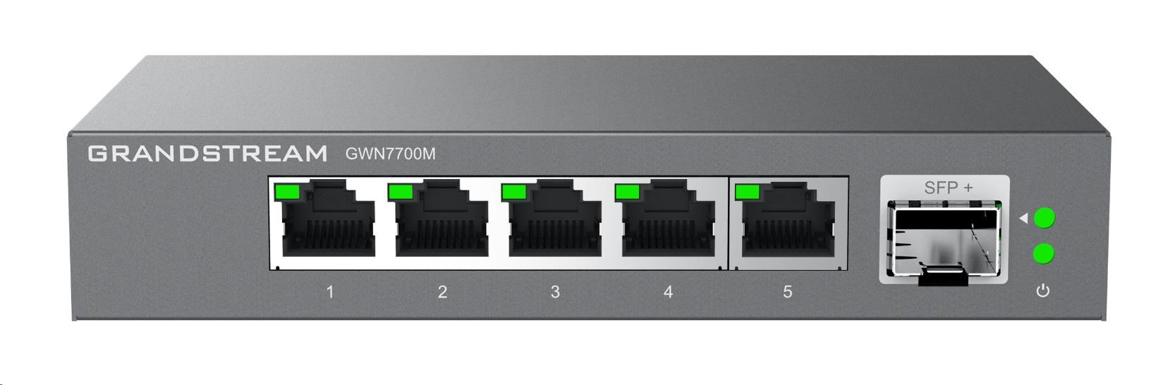 GWN7700M je unmanaged multi-Gigabit síťový switch, které poskytuje vysokorychlostní síťové připojení až 2,5 Gb/s pro home office a malé a střední firmy. Tento 5 portový multigigabitový switch podporuje rychlý Ethernet, 1-Gigabit a 2.5-Gigabit síťové rychlosti a zároveň obdsahuje 1 SFP+ Gigabit port, který poskytuje 1-Gigabit nebo 10-Gigabit vysokorychlostní uplinkové připojení k vaší síti.
