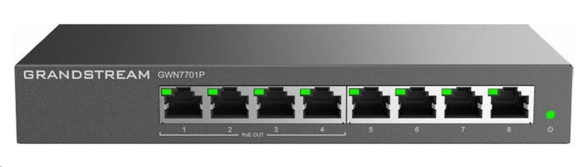 Grandstream GWN7701P je unmanaged síťový switch, který přináší rychlé a cenově dostupné řešení přidání vysokorychlostní gigabitové konektivity do domácích kanceláří a malých/středních podniků.