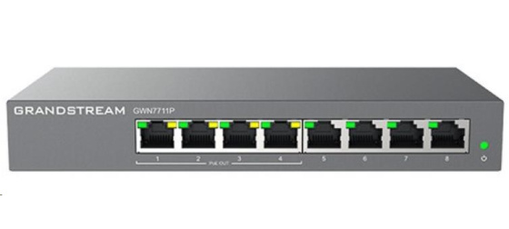 GWN7711P podporuje VLAN pro flexibilní a sofistikovanou segmentaci provozu, QoS pro upřednostňování síťového provozu, IGMP Snooping pro optimalizaci výkonu sítě a komplexní možnosti zabezpečení proti potenciálním útokům. GWN7711P lze snadno spravovat prostřednictvím místního webového uživatelského rozhraní a cloudu pomocí systému správy zařízení Grandstream (GDMS). Díky komplexní sadě přizpůsobitelných přepínacích funkcí, dostupnému pasivnímu PoE režimu 24V DC a snadné správě cloudu jsou řady GWN7711(P) ideálními spravovanými síťovými přepínači pro malá až středně velká nasazení. GWN7711P poskytuje 4 porty PoE pro inteligentní dynamický výstup PoE pro napájení IP telefonů, IP kamer, přístupových bodů Wi-Fi a dalších koncových bodů PoE. Tento model s podporou PoE může také podporovat 24V DC pasivní režim PoE-out.