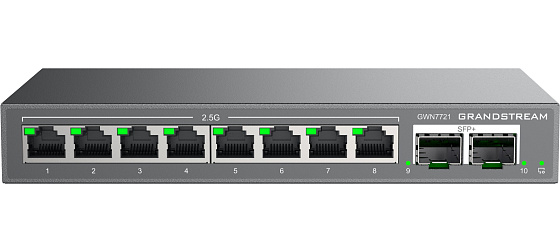 Modely GWN7721 a GWN7721P jsou 10portové spravované přepínače Layer 2 Lite vybavené 8 porty 2,5 Gigabit Ethernet a 2 porty 10 Gigabit SFP+, které umožňují malým a středním podnikům budovat škálovatelné a bezpečné vysokorychlostní sítě.