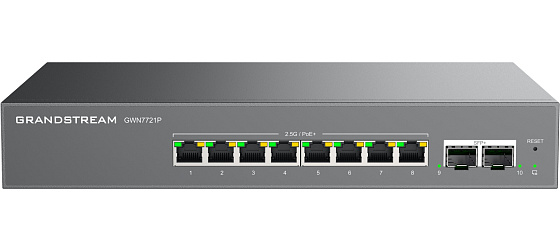 Modely GWN7721 a GWN7721P jsou 10portové spravované přepínače Layer 2 Lite vybavené 8 porty 2,5 Gigabit Ethernet a 2 porty 10 Gigabit SFP+, které umožňují malým a středním podnikům budovat škálovatelné a bezpečné vysokorychlostní sítě.