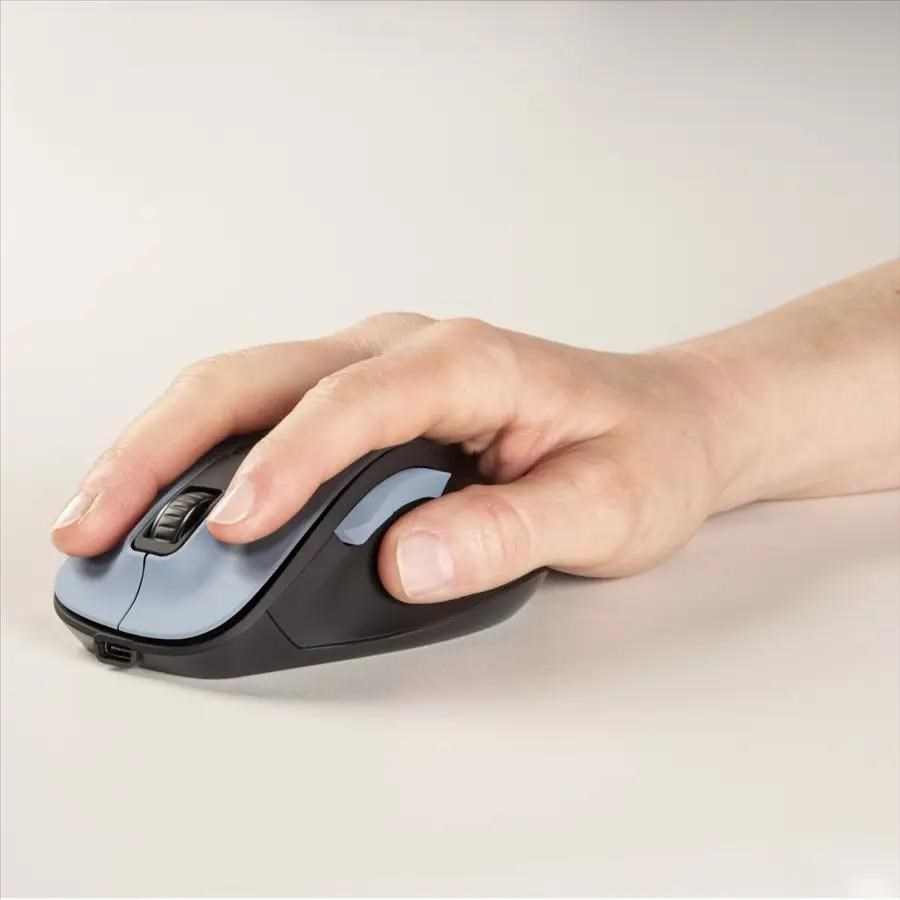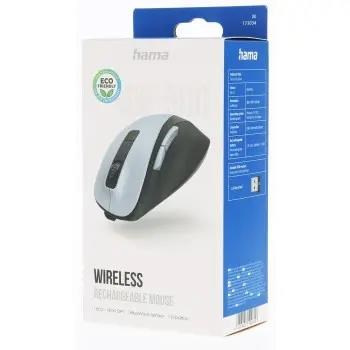 - 6tlačítková bezdrátová nabíjecí optická myš s přesným snímačem a tichými tlačítky, pro nerušenou práci s myší - snímač s technologií blue wave umožňuje použití na téměř jakémkoli povrchu - ergonomický tvar vhodný pro praváky - boční tlačítka pro snadné ovládání funkce vpřed/vzad v prohlížeči - DPI tlačítko pro změnu rozlišení (max. 1600 DPI) - integrovaný Li-Ion akumulátor, nabíjení pomocí USB-C kabelu - inteligentní řízení spotřeby energie aktivuje Stand by režim, pokud myš nepoužíváte - samostatný vypínač pro úsporu energie - výdrž myši je cca 75 dní při denním používání - 2,4 GHz technologie pro spolehlivý a nerušený přenos signálu - Smart Link technologie – snadné a rychlé připojení - nano USB přijímač může být trvale zasunutý v PC - polymerem potažené kluzné plochy pro plynulý pohyb myši - pogumované rolovací kolečko Systémové požadavky: - operační systém: Windows 11/10/8/7/Vista/XP, Mac OS 10.10 nebo vyšší Technické parametry: - připojení: USB-A vidlice (2,4 GHz RF) - rozlišení: 800/1200/1600 DPI - počet tlačítek: 6 - rolovací kolečko - napájení: Li-Ion akumulátor - nabíjení: USB-C zásuvka - rozměry: 8,5 x 12 x 4,2 cm - barva: polární modrá Obsah balení: - optická bezdrátová myš MW-500 Recharge - USB přijímač - USB nabíjecí kabel USB-A – USB-C - návod k použití. Hama GmbH & Co KG, Niederbacherstr. 13 86652 Monheim Německo, info@hama.com