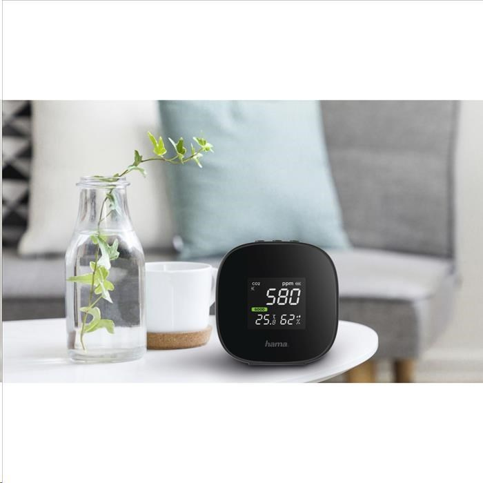 Tento přístroj se nesmí používat jako přístroj pro varování před nebezpečně vysokou koncentrací CO2 (např. Monitorování průmyslové bezpečnosti). Není vhodný pro zdravotnické zařízení, certifikační nebo testovací měření. Tento přístroj je primárně určen pro orientační měření vdomácnosti. Společnost Hama nepřebírá žádnou odpovědnost za případné škody způsobené nesprávným fungováním. Přes USB kabel není možné přenášet data.
