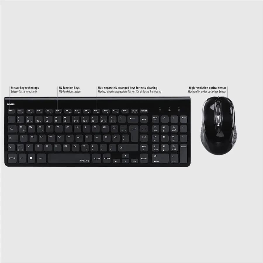 Popis Hama set bezdrátové klávesnice a myši Trento, černý
