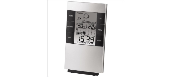 - digitální zobrazení teploty, vlhkosti vzduchu, času, dne v týdnu, data, vývoje teploty vzduchu a předpovědi počasí