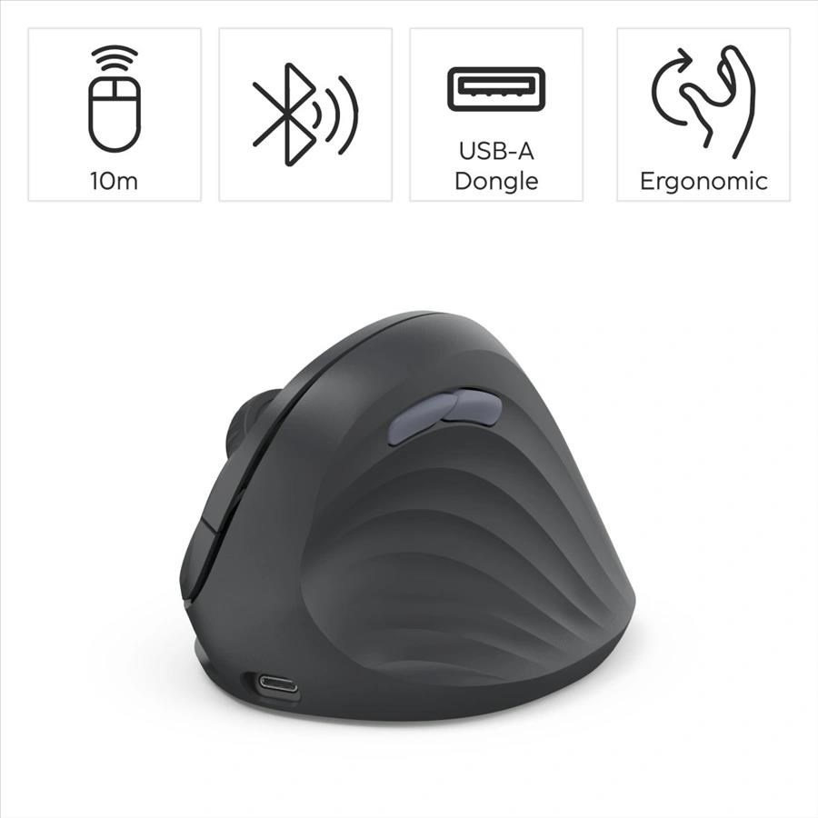 Popis Hama vertikální ergonomická bezdrátová myš EWM-600R, pro praváky, nabíjecí, Multi Device