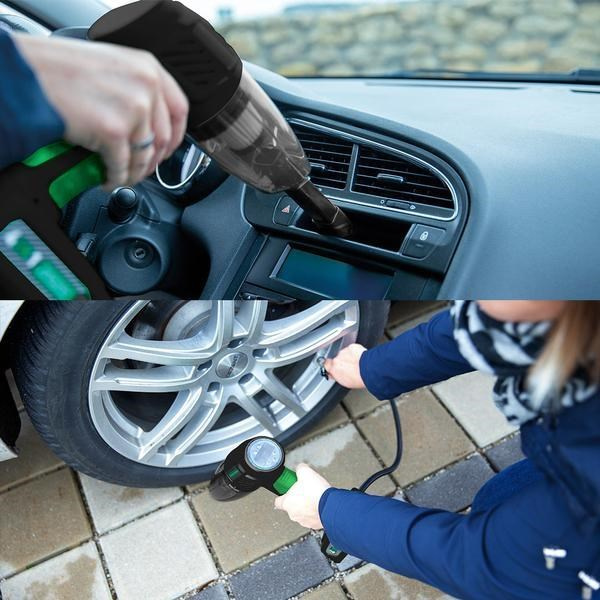 Objevte Hammersmith Air Storm - bezdrátový multifunkční vysavač 5 v 1 s funkcí kompresoru, který způsobí revoluci ve vašem životě! Tento všestranný přístroj vám poskytne výkon ručního vysavače a kompresoru v jednom, a to bez potíží s kabely. Ať už jej používáte v autě, doma nebo na cestách, vysavač Hammersmith Air Storm budete mít vždy po ruce. Tento inovativní vysavač dostane nečistoty ze všech mezer, ať už z čalouněného nábytku, pracovních ploch, spár nebo drážek. Ale to není všechno! Díky funkci kompresoru můžete snadno a rychle nafouknout míče, nafukovací matrace, pneumatiky jízdních kol, motocyklů nebo automobilů, aniž byste museli jít k čerpací stanici. Díky přehlednému LED displeji budete mít tlak v pneumatikách vždy pod kontrolou. Vzduchová pumpa Hammersmith Air Storm vám nabízí předprogramovaná nastavení pro nafukování pneumatik vzduchových matrací, kol, motocyklů a automobilů.