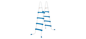 Nerezové bazénové schůdky pro nadzemní bazény o výšce 90 cm. 2x 3 schůdky a plošina, nosnost do 150kg..