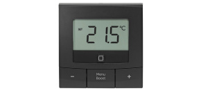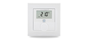Programovatelný bezdrátový Nástěnný termostat se senzorem teploty a vlhkosti s podsvíceným LCD. Umožňuje řízení regulace teploty ve spojení s radiátorovými termostatickými hlavicemi nebo akčními členy podlahového vytápění. Možnost autonomního provozu. Napájení 2x AA baterie..