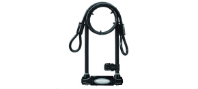 Ocelové lanko o průměru 10 mm a délce 1 200 mm má vinylový potah, který zabraňuje poškrábánílaku. Obsahuje integrovaný nastavitelný 4-ciferný kombinační zámek (10 000 možností)..