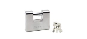 Diskový visací zámek M40EURD o šířce 70 mm s tělem z nerezové oceli odolný proti korozi. Třmen z bor-karbidu s osmiúhelníkovým profilem zajišťuje maximální ochranu proti přeřezání. 4ks klíčů v balení. Bezpečnostní třída: ML8. Cena za kus..