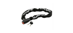 Řetěz s oky o průměru 10 mm je dlouhý 1 000 mm a je vyrobený z tvrzené oceli. Nylonový potah jeho třmenu zabraňuje poškrábání laku. Krytka klíčové dírky zabraňuje vniknutí nečistot. Součástí balení jsou 4 ks klíčů..