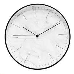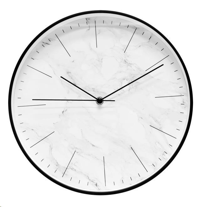 • analogové nástěnné hodiny • čas řízený krystalem • materiál plast • průměr ciferníku 298 mm • napájení 1 ks baterie typ AA 1,5 V (tužková, není součástí balení) • černé, ciferník bílý se vzorem mramoru, číslice černé. TechnoTrade Import-Export GmbH, Gewerbepark Berlin-Wildau 10 15745 Wildau Německo, info@technotrade-berlin.de