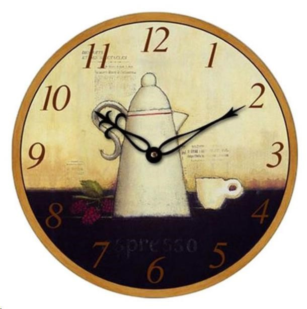 Analogové nástěnné hodiny, čas řízený krystalem, materiál kompozitní dřevo, průměr ciferníku 345 mm, napájení 1 ks baterie typ AA 1,5 V (tužková, není součástí balení), ciferník se vzorem, číslice hnědé.Více