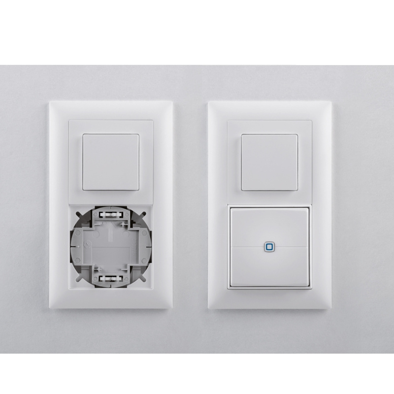 Jednoduchá integrace bateriových nástěnných dálkových ovladačů Homematic IP s rámečky o velikosti 55 mm modelové řady Ediziodue od výrobce Feller. Nevhodné pro akční členy třetích stran..Více