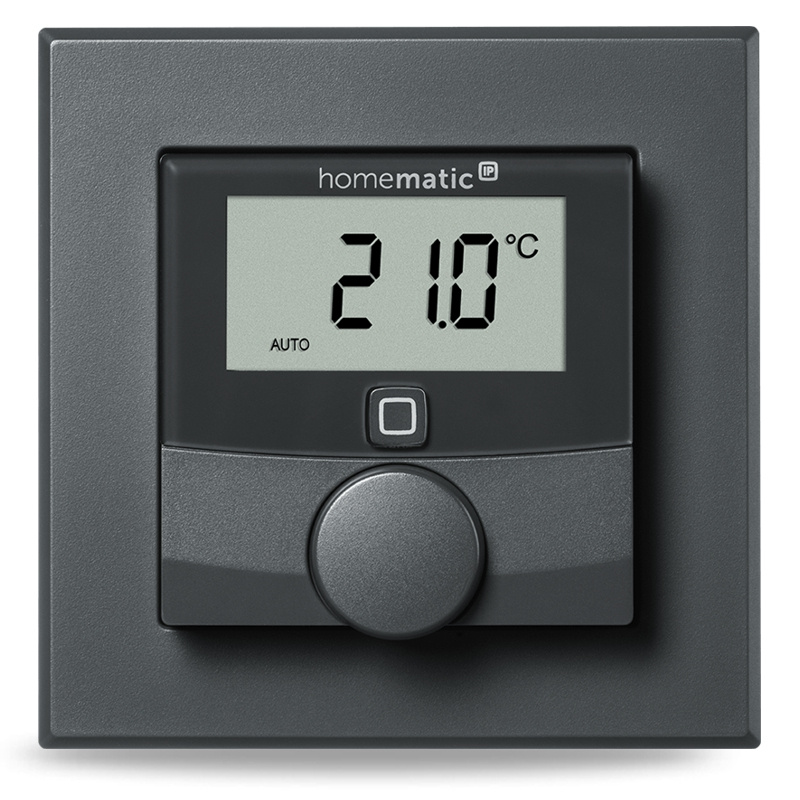 Jedním z takových zařízení je i bezdrátový Nástěnný termostat se senzorem vlhkosti v antracitové barvě (HmIP-WTH-A) z řady Homematic IP s podsvíceným LED displejem o velikosti 1,74" pro zobrazení teploty a vlhkosti představující inteligentní způsob regulace vytápění a úspory energií.
