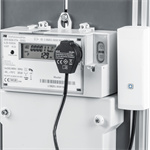 Rozhraní pro chytré elektroměry si na elektroměr jednoduše namontujete sami: Elektronické elektroměry pro domácnosti mají optické datové rozhraní podle normy IEC 62056-21\. Kolem tohoto tzv. informačního rozhraní je osazena kovová destička, takže magnetickou čtecí hlavu lze snadno upevnit na místo. Magnetický senzor se na ni jednoduše uchytí. Senzor se pak připojí k rozhraní (vyhodnocovací jednotka) a prostřednictvím aplikace se integruje do vaši instalace - hotovo!