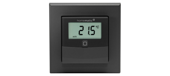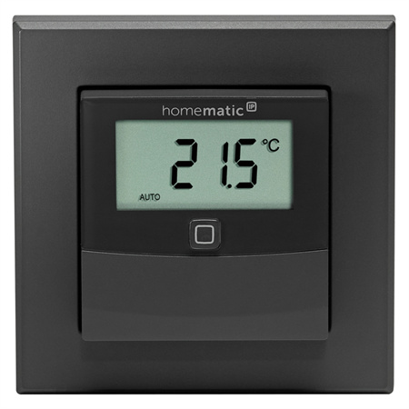 Bezdrátový nástěnný Senzor teploty a vlhkosti v antracitové barvě (HmIP-STHD-A) s LED displejem o velikosti 1,74" (4,4 cm) pro zobrazení aktuálních informací představuje inteligentní způsob pro regulaci vytápění a úsporu energií.