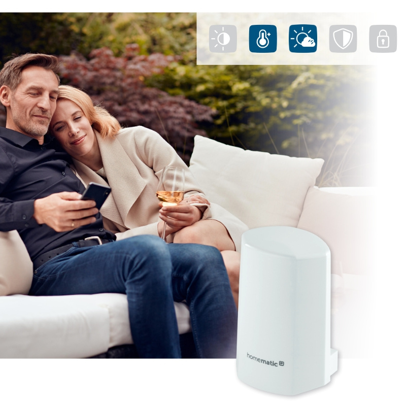 Kompaktní senzor s krytím proti nepřízni počasí a povětrnostním vlivům nabízí široké možnosti využití ve spojení s dalšími zařízeními systému Homematic IP. Zařízení monitoruje venkovní teplotu a relativní vlhkost. Naměřené hodnoty následně předává Centrální jednotce (HmIP-HAP) a připojeným zařízením Homematic IP, která reagují podle předem definované konfigurace.
