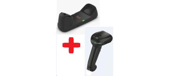 Bluetooth scanner, 2D, imager (standard range), incl.: cable (USB, straight, 3 m, black), charging/transmitter cradle, colour: black