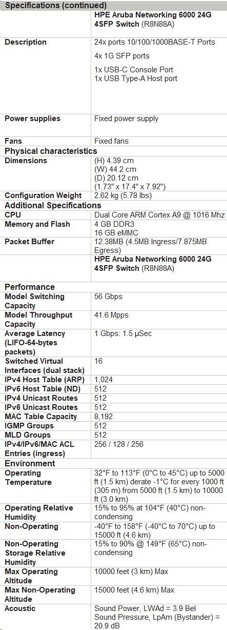 | Specification | 6000 24G 4SFP Switch (R8N88A) |