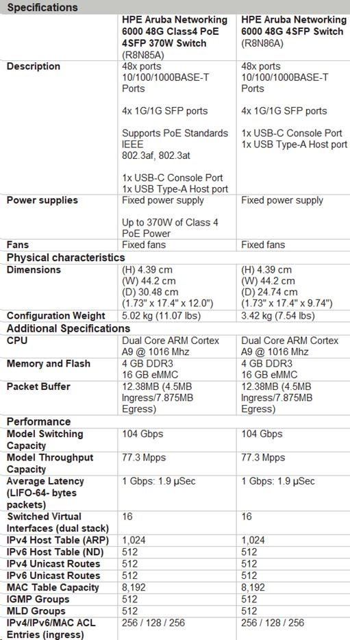 HPE Aruba Networking CX 6000 48G 4SFP Switch.