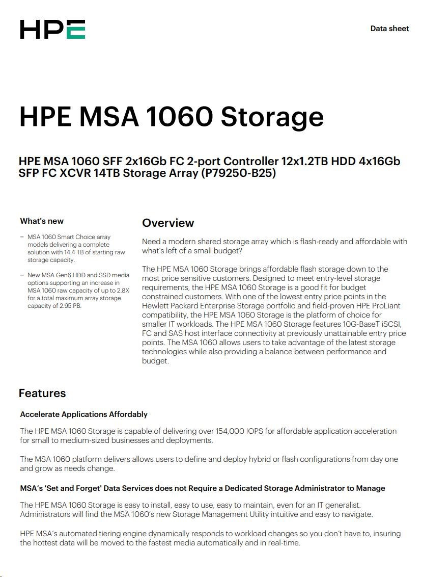 HPE MSA 1060 SFF 2x16Gb FC 2-port Controller 12x1.2TB HDD 4x16Gb SFP FC XCVR 14TB Storage Array Smart Choice