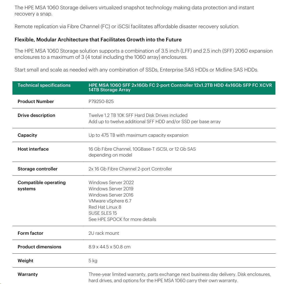 HPE MSA 1060 SFF 2x16Gb FC 2-port Controller 12x1.2TB HDD 4x16Gb SFP FC XCVR 14TB Storage Array.