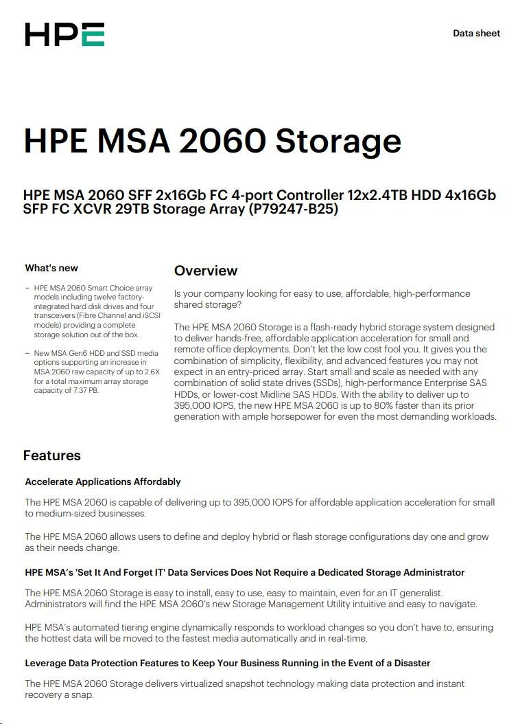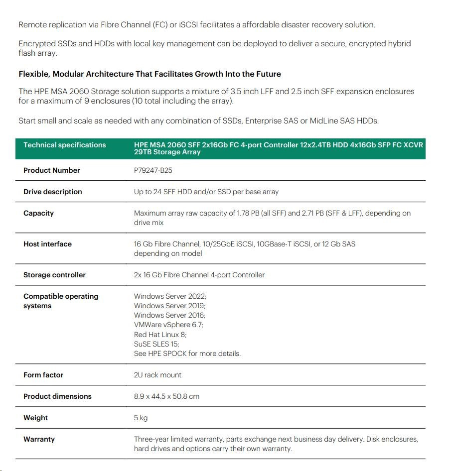 HPE MSA 2060 SFF 2x16Gb FC 4-port Controller 12x2.4TB HDD 4x16Gb SFP FC XCVR 29TB Storage Array Smart Choice