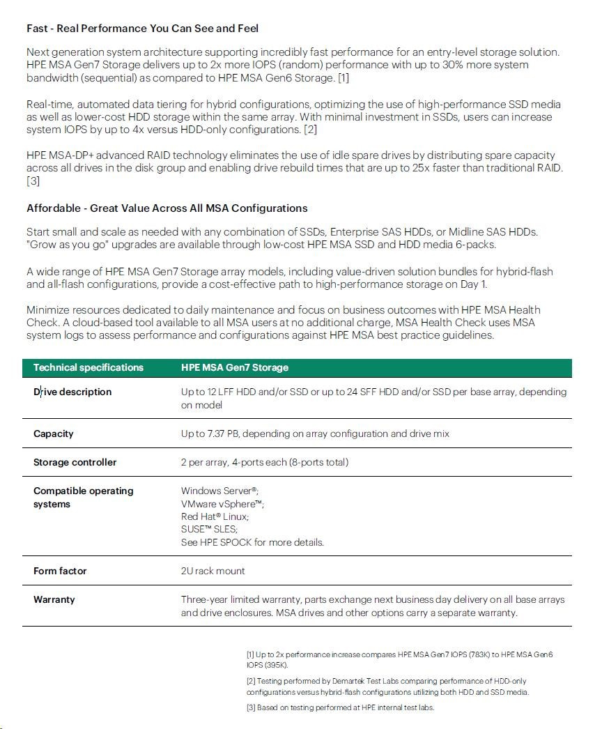 HPE MSA 2070 10/25GbE iSCSI SFF Storage.