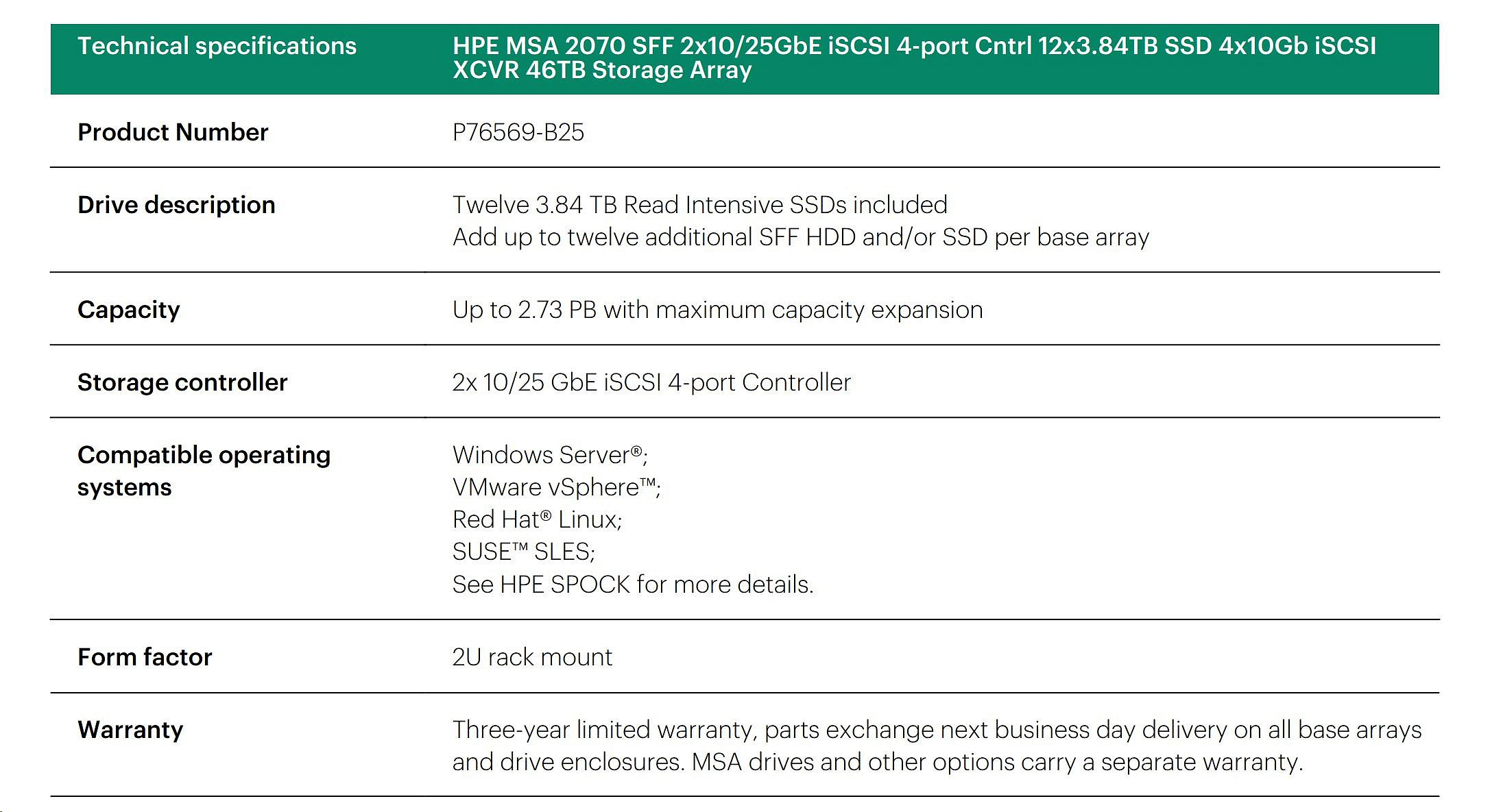 HPE MSA 2070 SFF 2x10/25GbE iSCSI Array