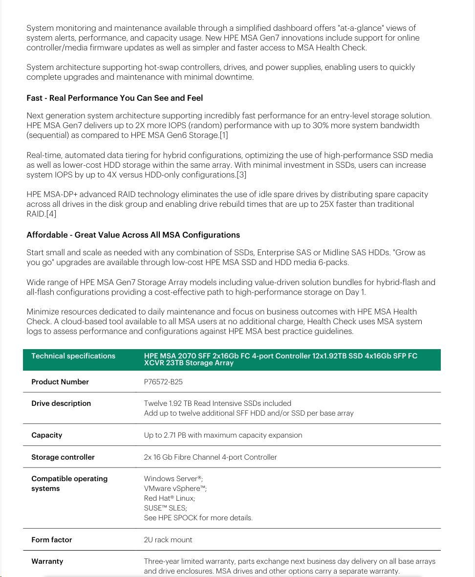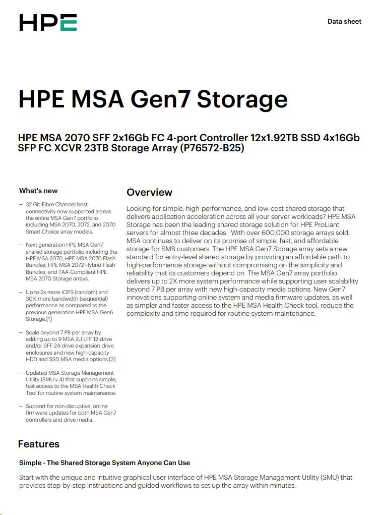 HPE MSA 2070 SFF 23TB (12x1.92TB R0Q47A, 2x16G FC4pController, 4x16Gb SFP-SFP-FCXCVR C8R24B) Smart Choice.