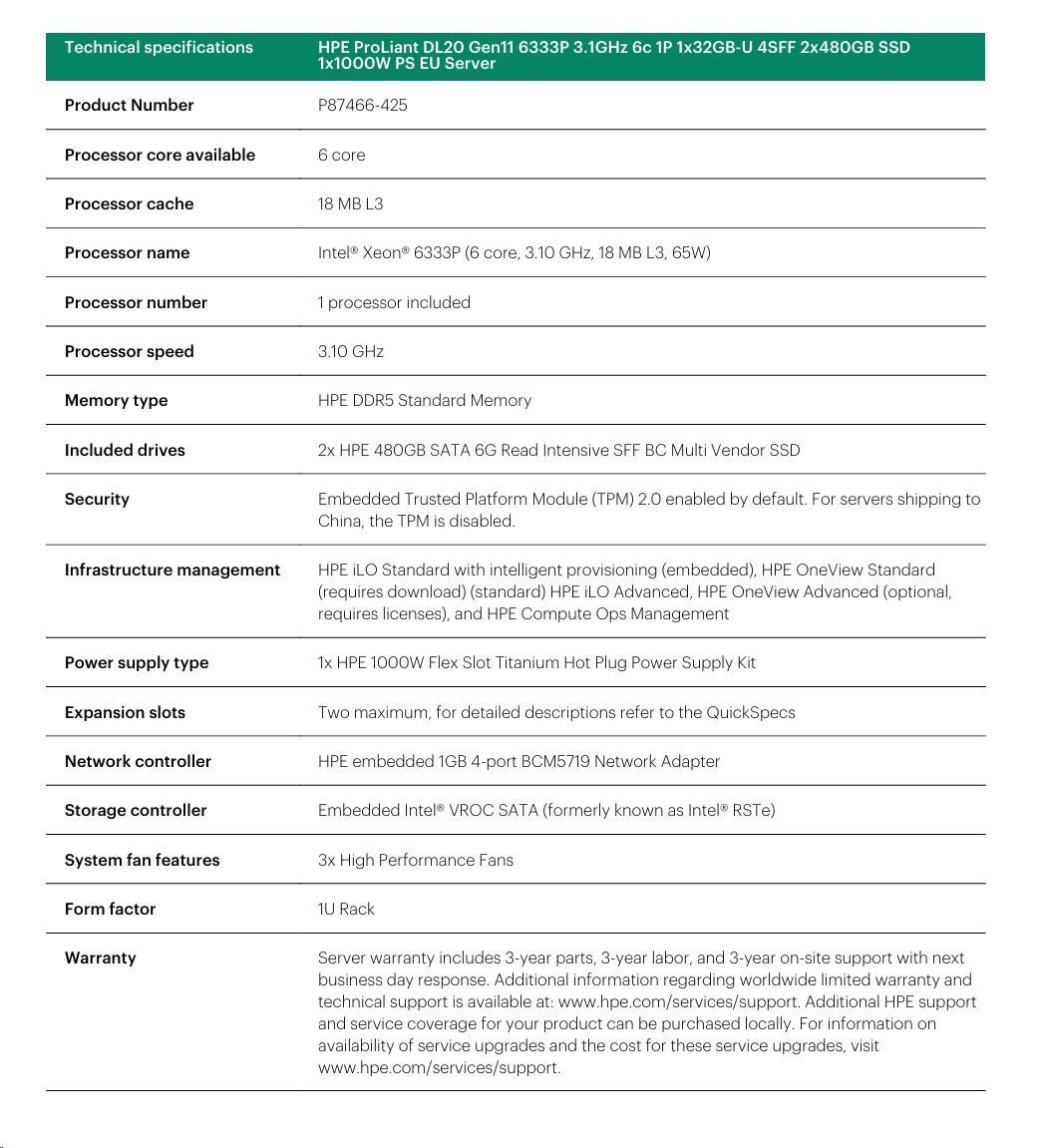 Provedení serveru:Rack, 1U Rack; Výrobce CPU:Intel; Maximální počet procesorů:1; Řada procesorů:Intel 6 Core Xeon; SSD Kapacita (GB):480, 480; Model procesoru:Intel Xeon E-2436; Výkon CPU dle PassMark:21708; Velikost paměti RAM (GB):32; Maximální paměťová kapacita serveru (GB):128; Maximální počet slotů PCIe:2; Maximální počet HDD v serveru:6.Více