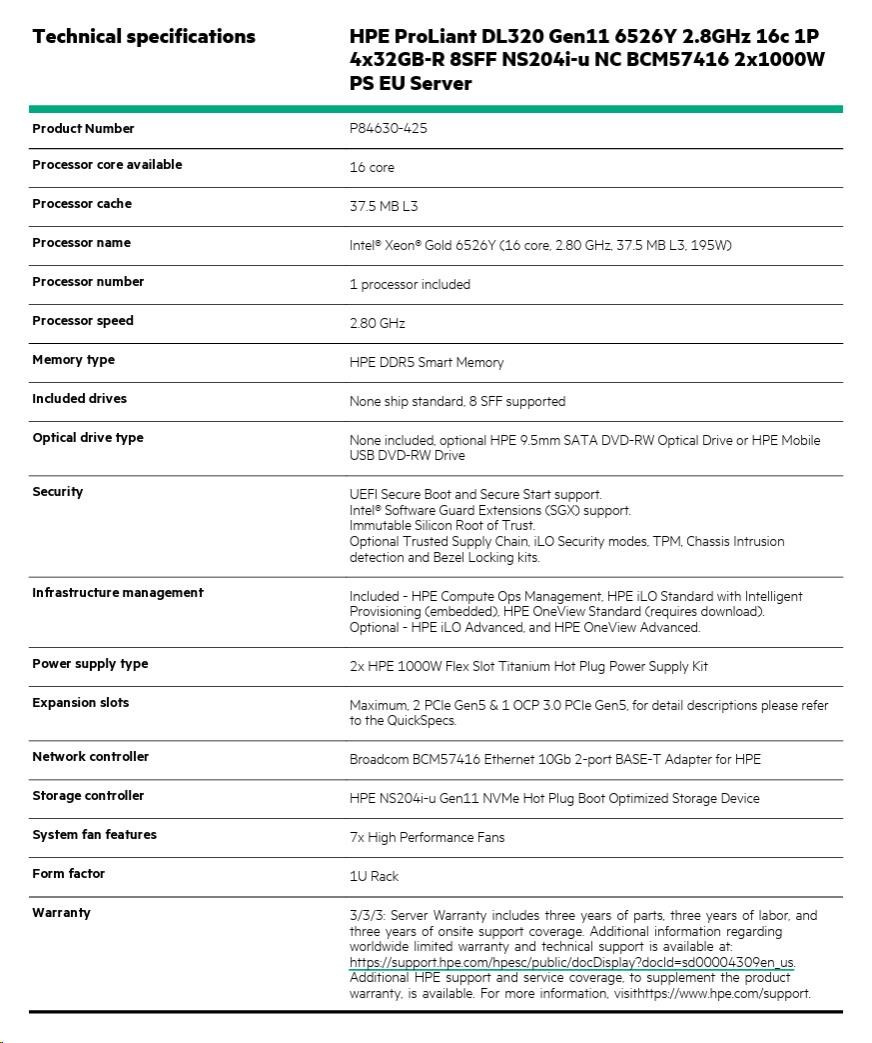 Provedení serveru:Rack, 1U Rack; Výrobce CPU:Intel; Maximální počet procesorů:1; Řada procesorů:Intel 16 Core Xeon; Model procesoru:Intel Xeon 6526Y; Velikost paměti RAM (GB):128; Maximální paměťová kapacita serveru (GB):512; Maximální počet slotů PCIe:2; Maximální počet HDD v serveru:8; Hot-plug cage pro HDD:2.5" SFF; RAID:1, 5; Redundantní zdroj.Více